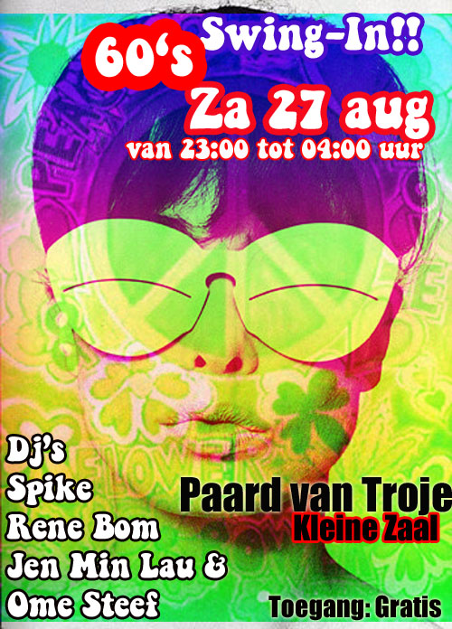 Dresscode: Happy Hippie. Aanvang: 21:00 uur. Entree: 7,50.
