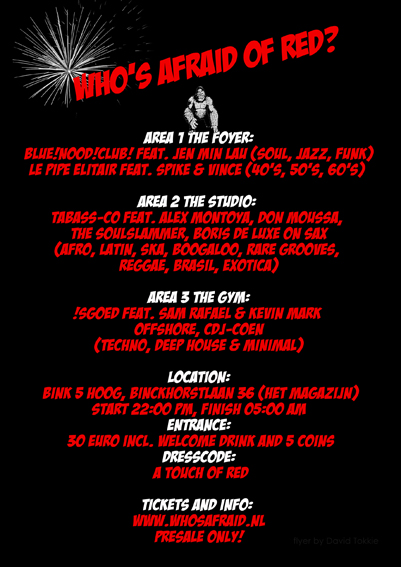 1 x per maand op elke 2 de vrijdag kun je in AREA 1 dansen op de muziek die 'oude' bezoekers van onze feesten gewend zijn.....n.b wel met meer Soul-Funk-Jazz-Afro-Brazil bij , maar er zal nu ook een aparte ruimte komen, AREA 2, waarin een muzikaal thema wordt vastgesteld!